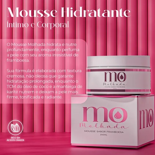 O Mousse Íntimo e Corporal Mo Molhada é a escolha perfeita para quem busca hidratação profunda e nutrição intensa, com um toque de perfume doce e irresistível. Sua fórmula leve e cremosa deixa a pele macia, sedosa e radiante, enquanto cuida da sua barreira sem obstruir os poros. Ideal para quem deseja uma pele suave e perfumada, esse mousse é um verdadeiro abraço de hidratação e cuidado.